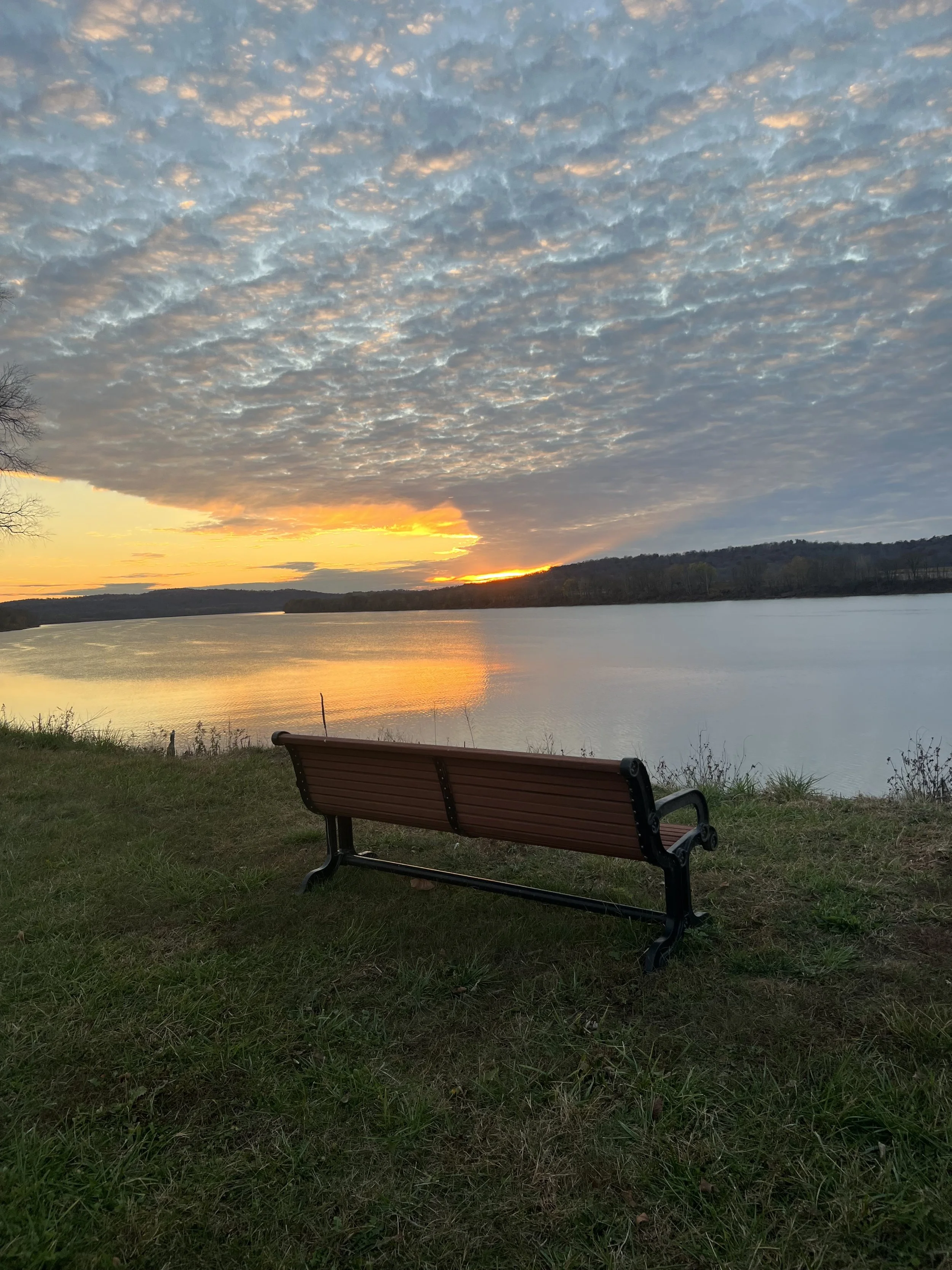 Photo of bench looking at river.